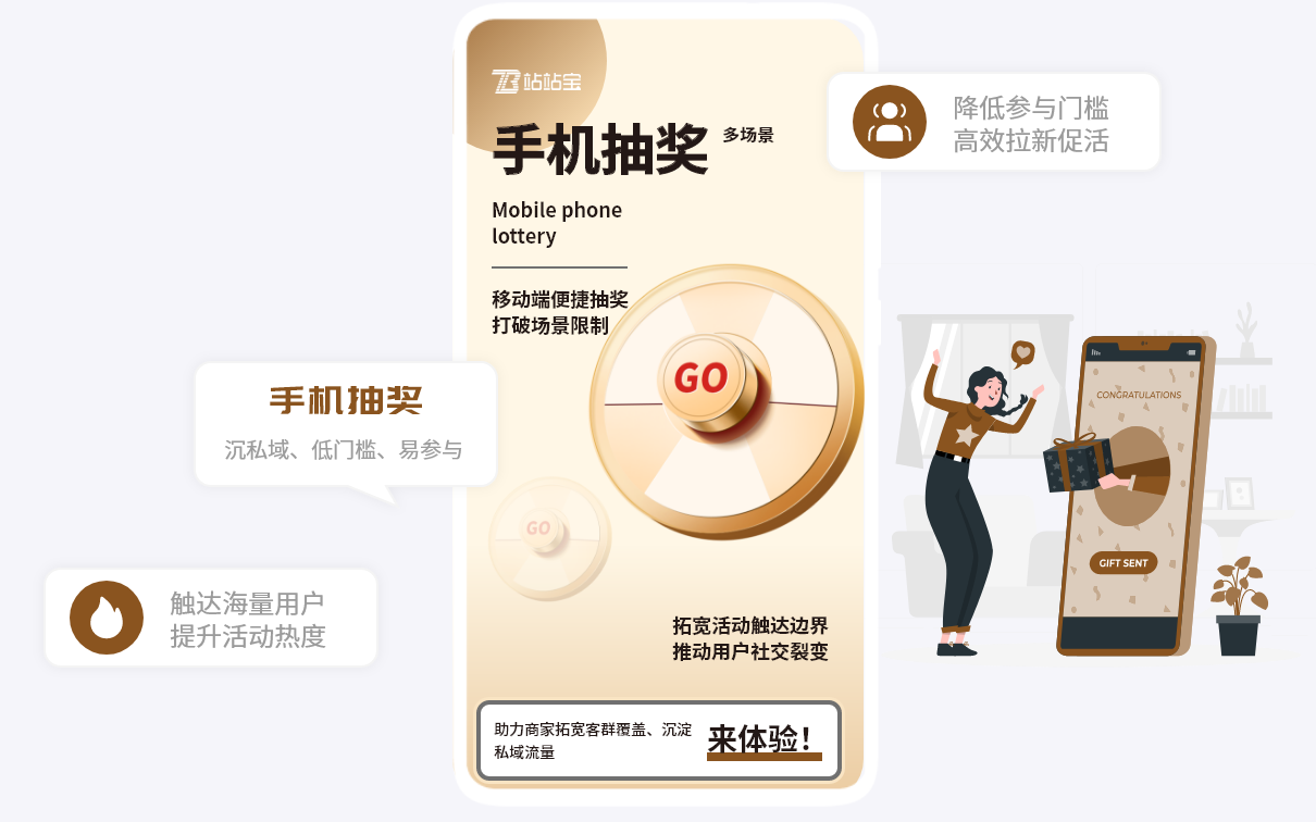 手机抽奖是以用户的移动设备为核心载体。用户通过扫码进入抽奖池,抽奖过程实时在手机中展示,开奖结果推送到用户手机中。这种模式能突破场景限制,覆盖更多用户,助力商家高效拉新、增强用户粘性,推动后续转化。