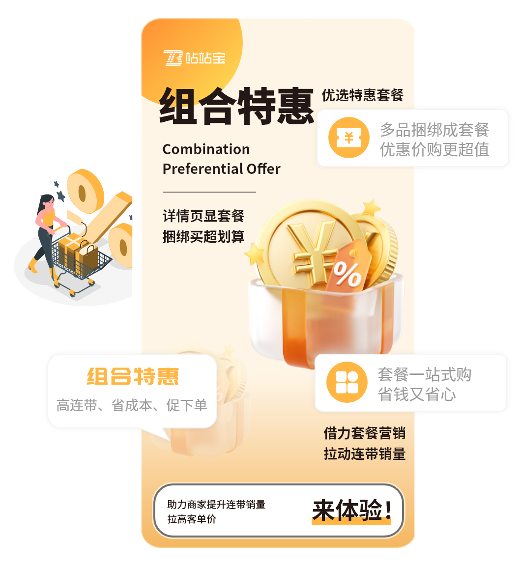 组合活动是“多品组合 + 专属低价” 的精准营销模式,商家按商品关联性或消费场景,将 2 款及以上商品打包成套餐,设低于单买总价的套餐价,用户可一键购买,简化选购流程。可以帮商家提升连带率和客单价,助力提升销售额。