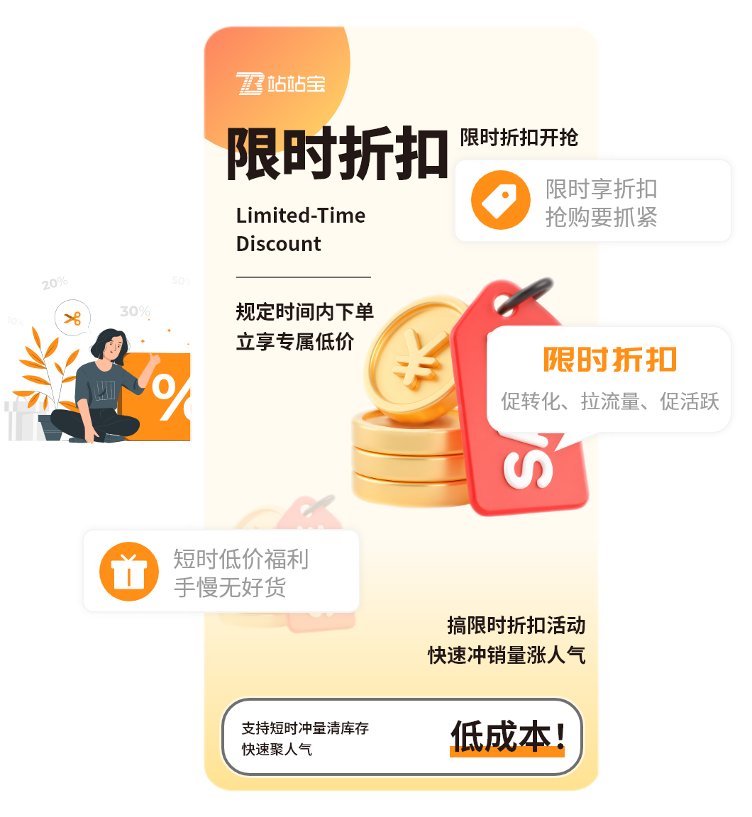 限时折扣是商家以 “短期降价 + 时间限制” 为核心的促销形式,在指定时段内为商品设定专属折扣价,适配新品引流、库存清仓、节日促销等场景。用户需在活动有效期内下单才能享受优惠,“限时” 特性可快速激发消费紧迫感,推动即时转化;商家则借此高效提升商品销量、吸引流量,同时借助折扣热度增强用户活跃度与品牌关注度。