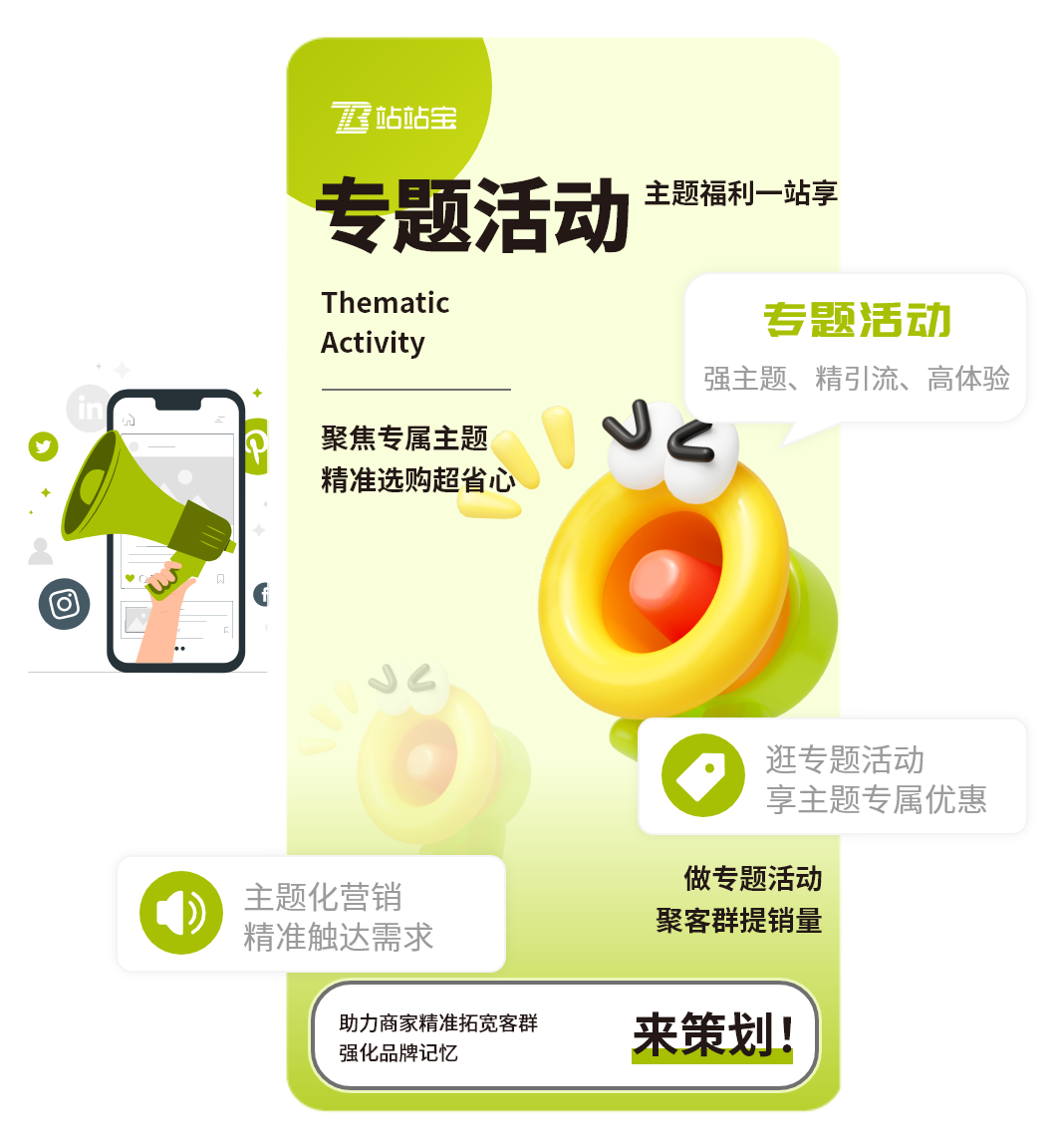 专题活动是围绕特定主题打造的整合式营销活动,商家可结合节日、场景或品类,集中推出优惠商品、互动玩法及专属权益,形成特色活动页面。可助力商家强化品牌记忆点,同时通过多形式内容联动,提升用户参与度与消费转化,适配多行业营销需求。
